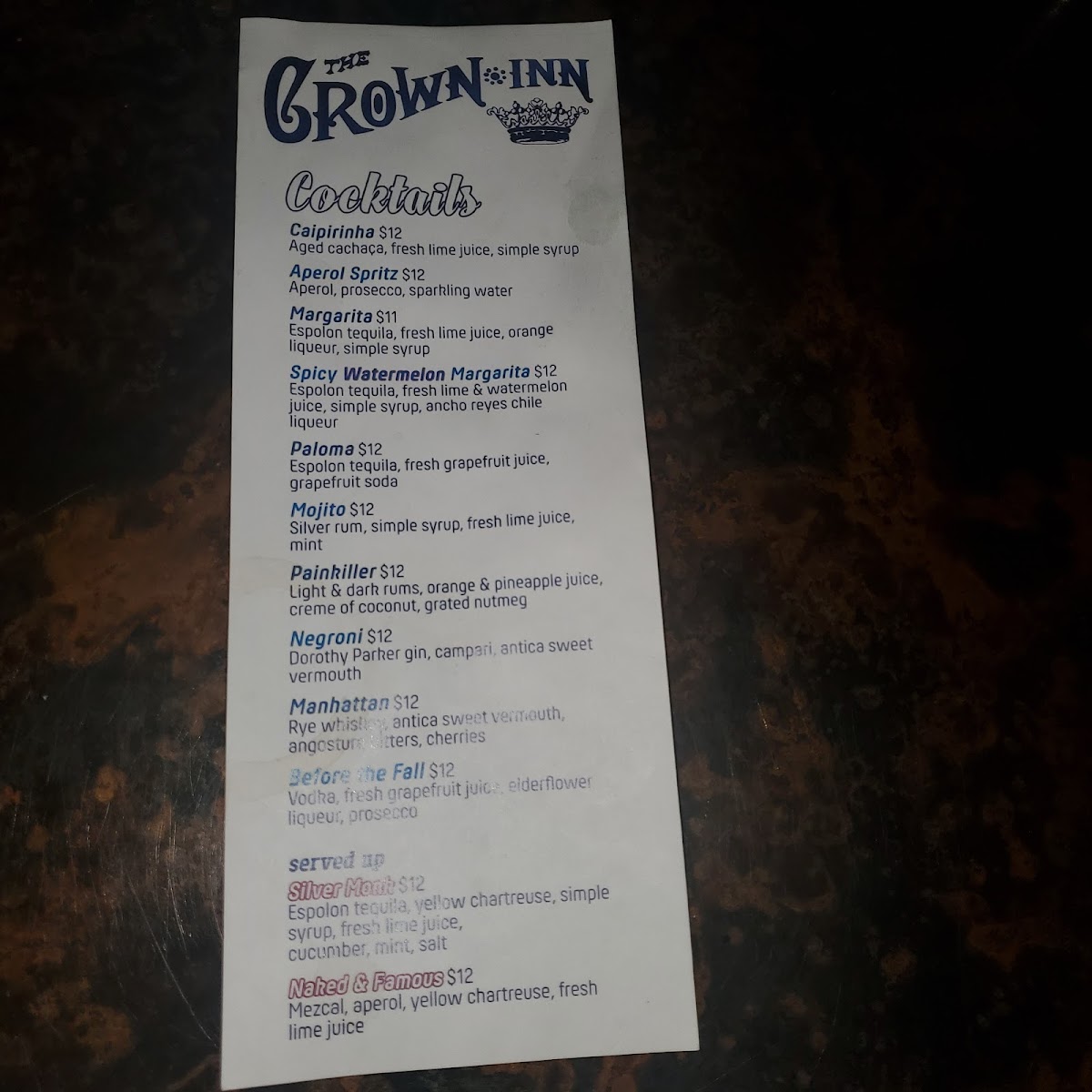 The Crown Inn Menu